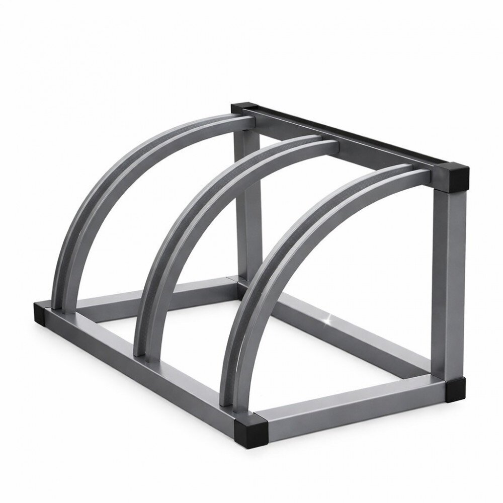 Велопарковка закруглённая для трех мест с длиной 80 см, шириной 45 см и высотой 45 см, весит 12 кг.